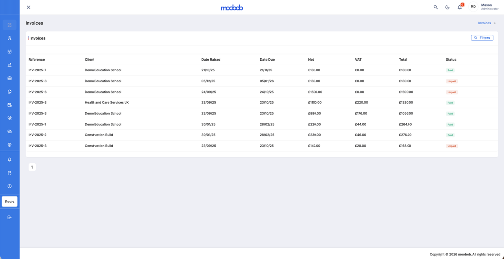 Automated alerts and reconciliation tools ensure timely payment processing and streamline financial tracking. moobob’s Billing Integration optimises cash flow, improves financial oversight, and ensures efficient billing practices, making it easier to manage your finances and focus on growing your business.